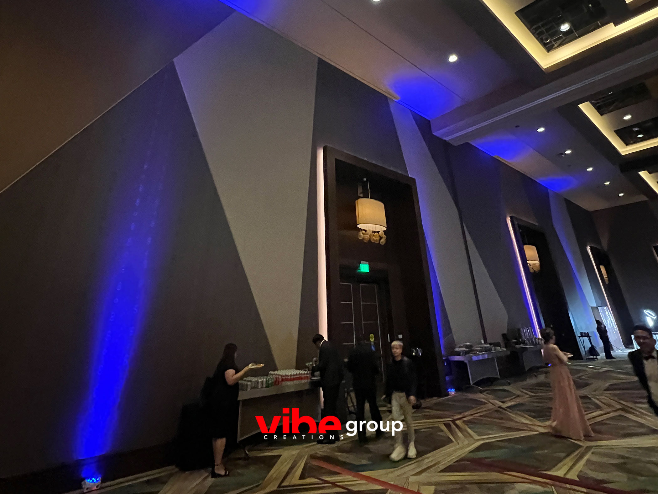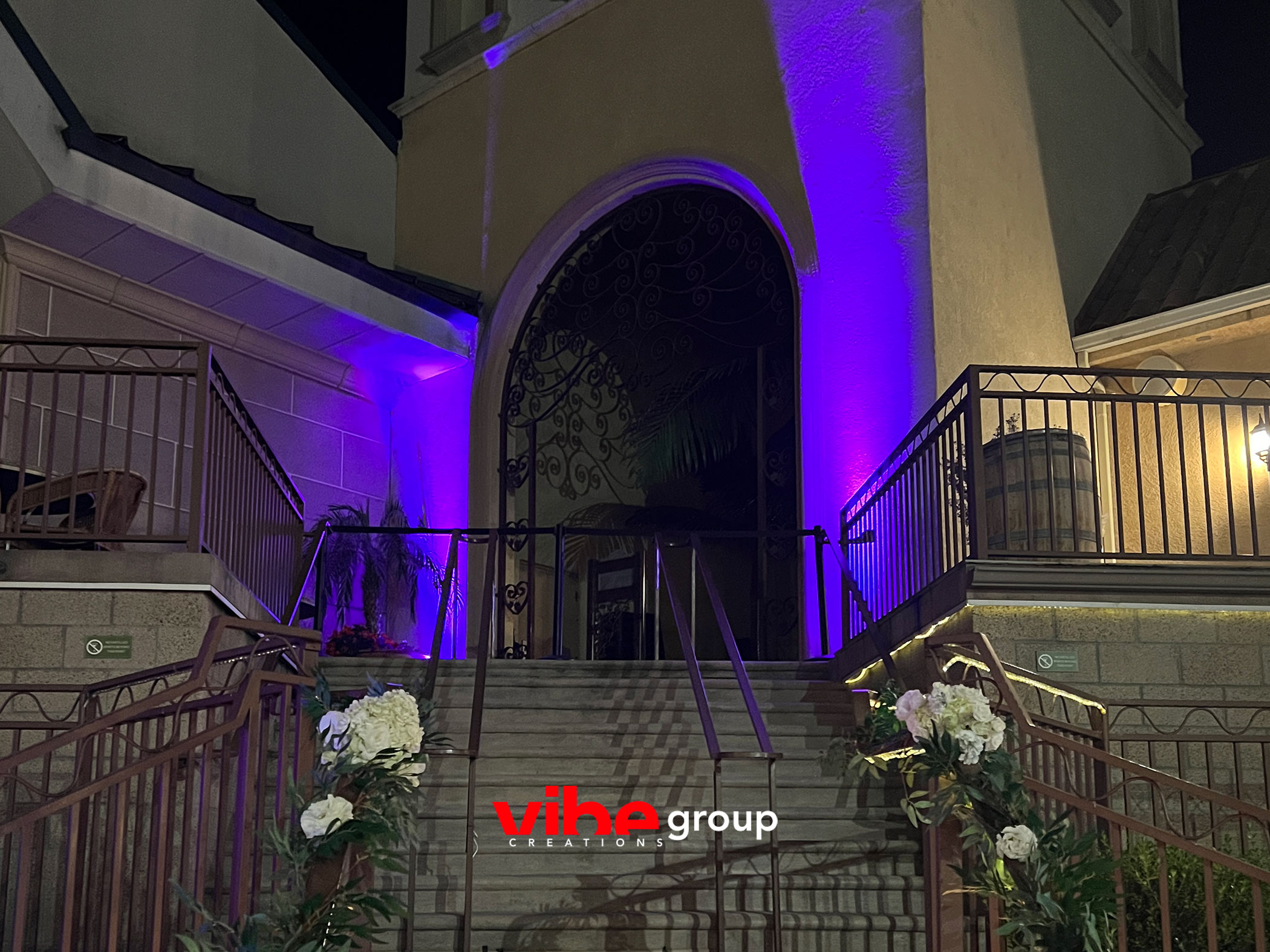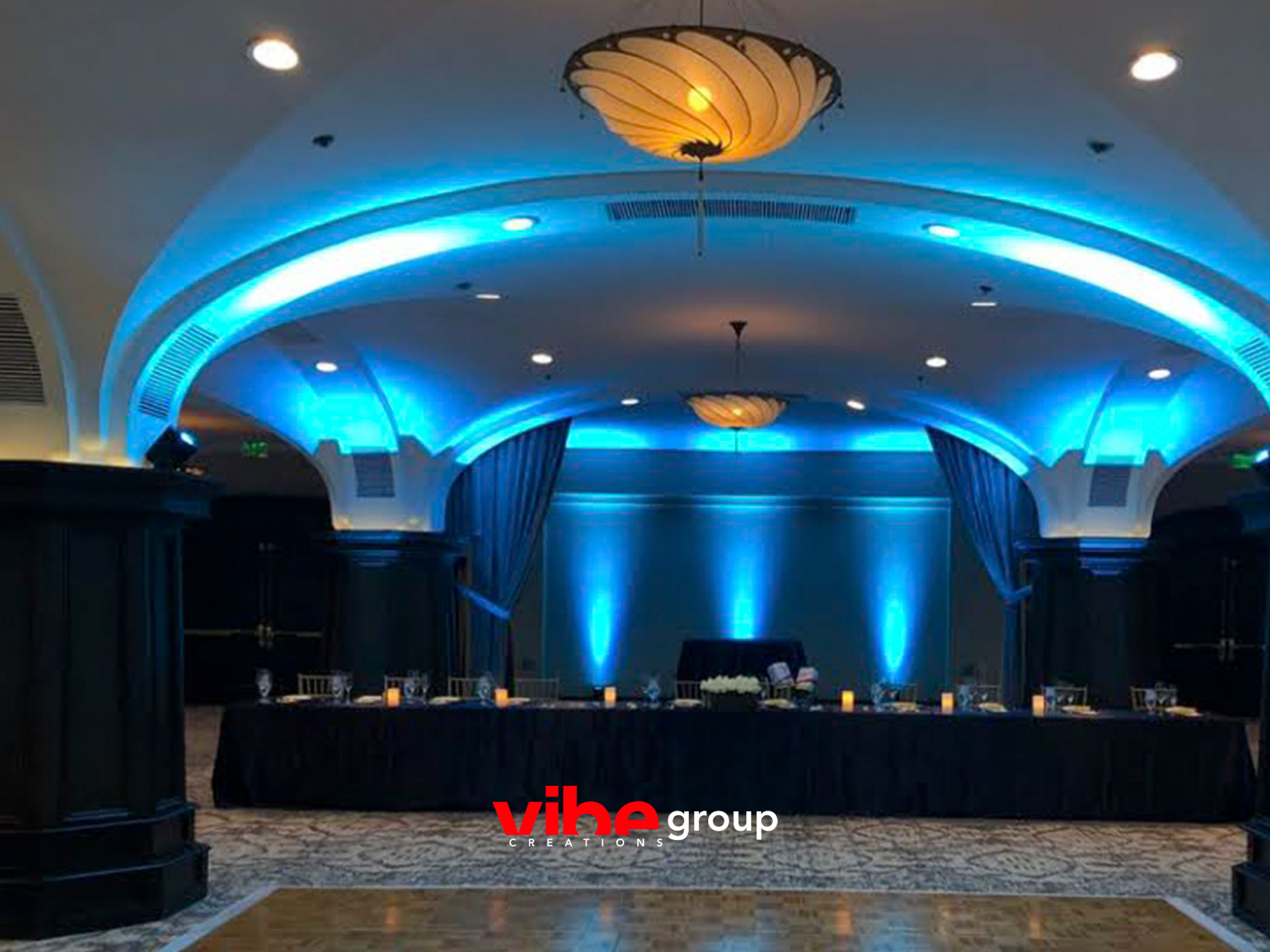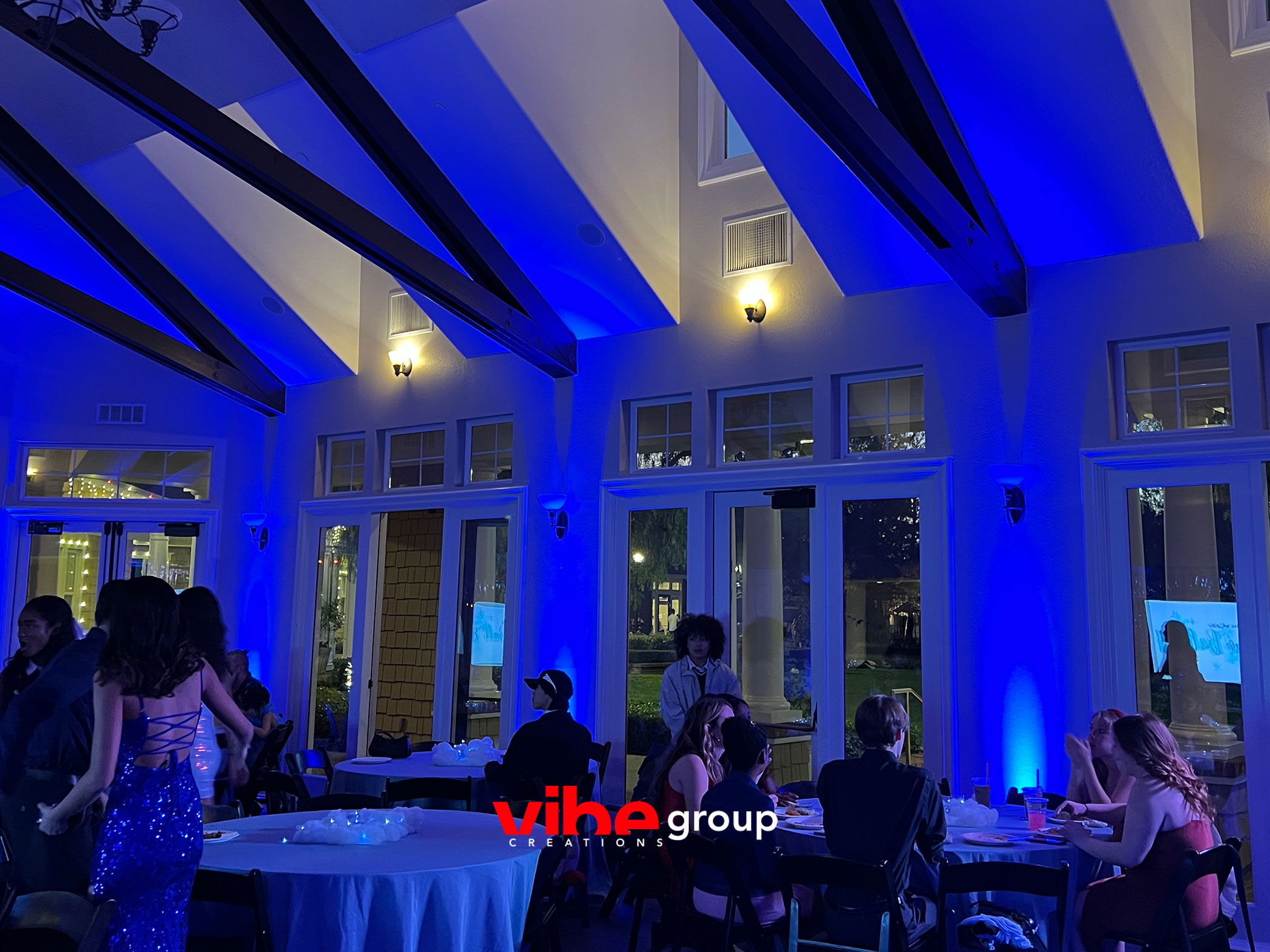 | 12 Uplighting ($400) programmable to any color to illuminate and highlight the venue's perimeters. | |||