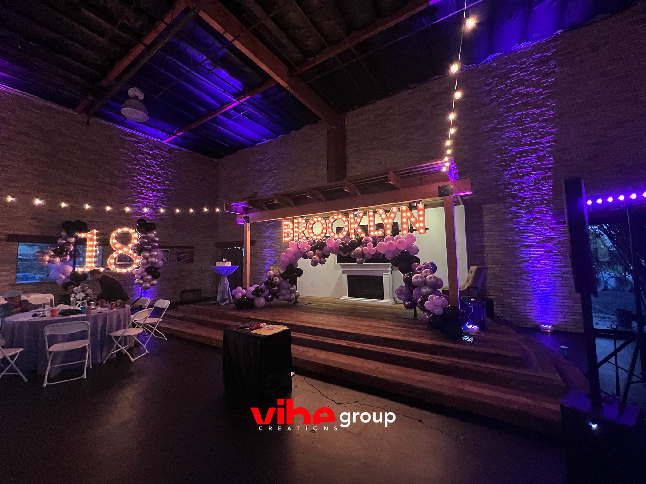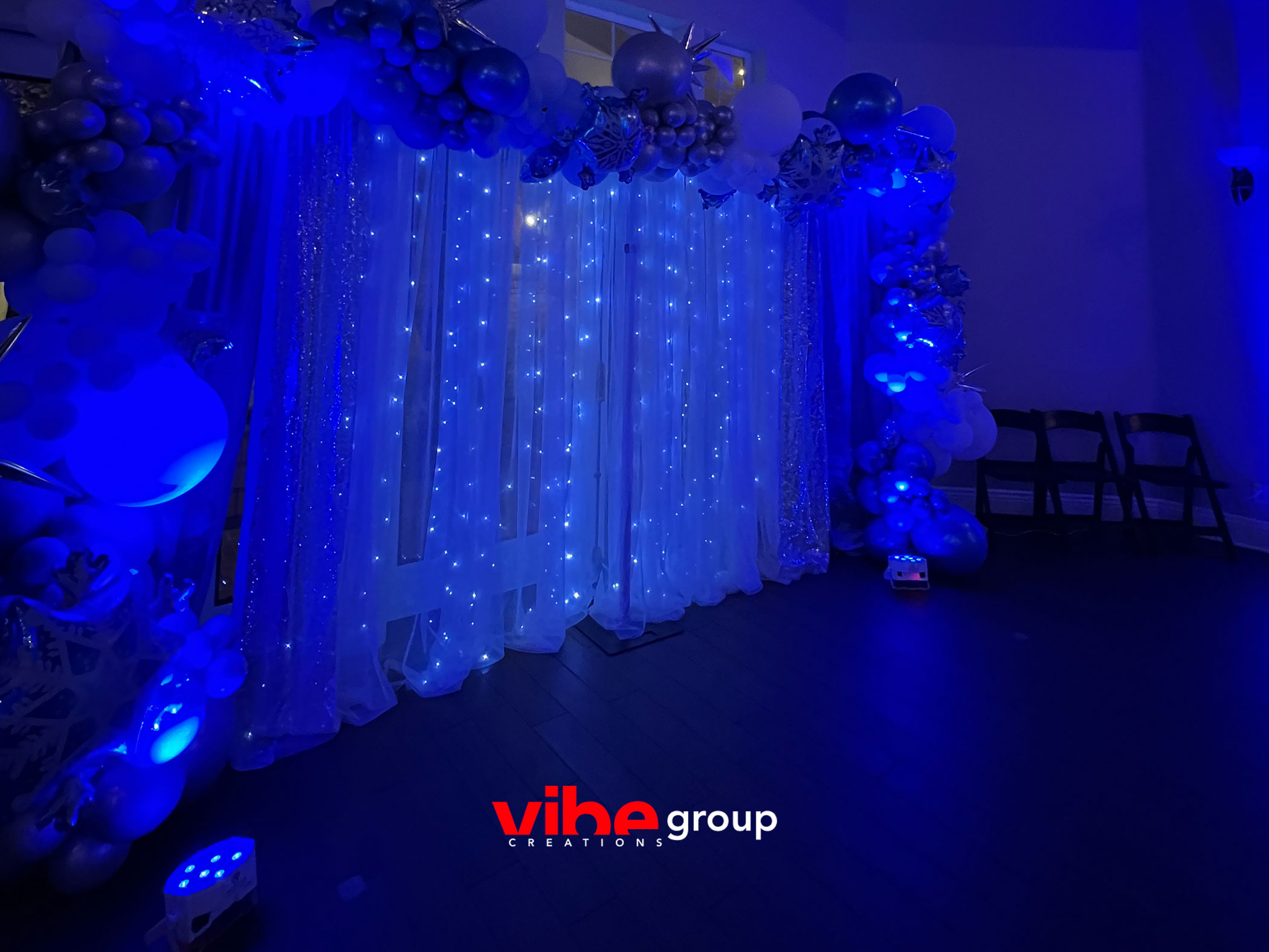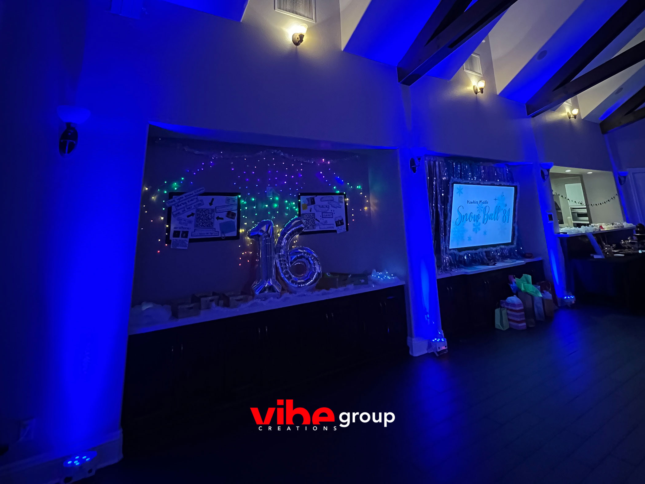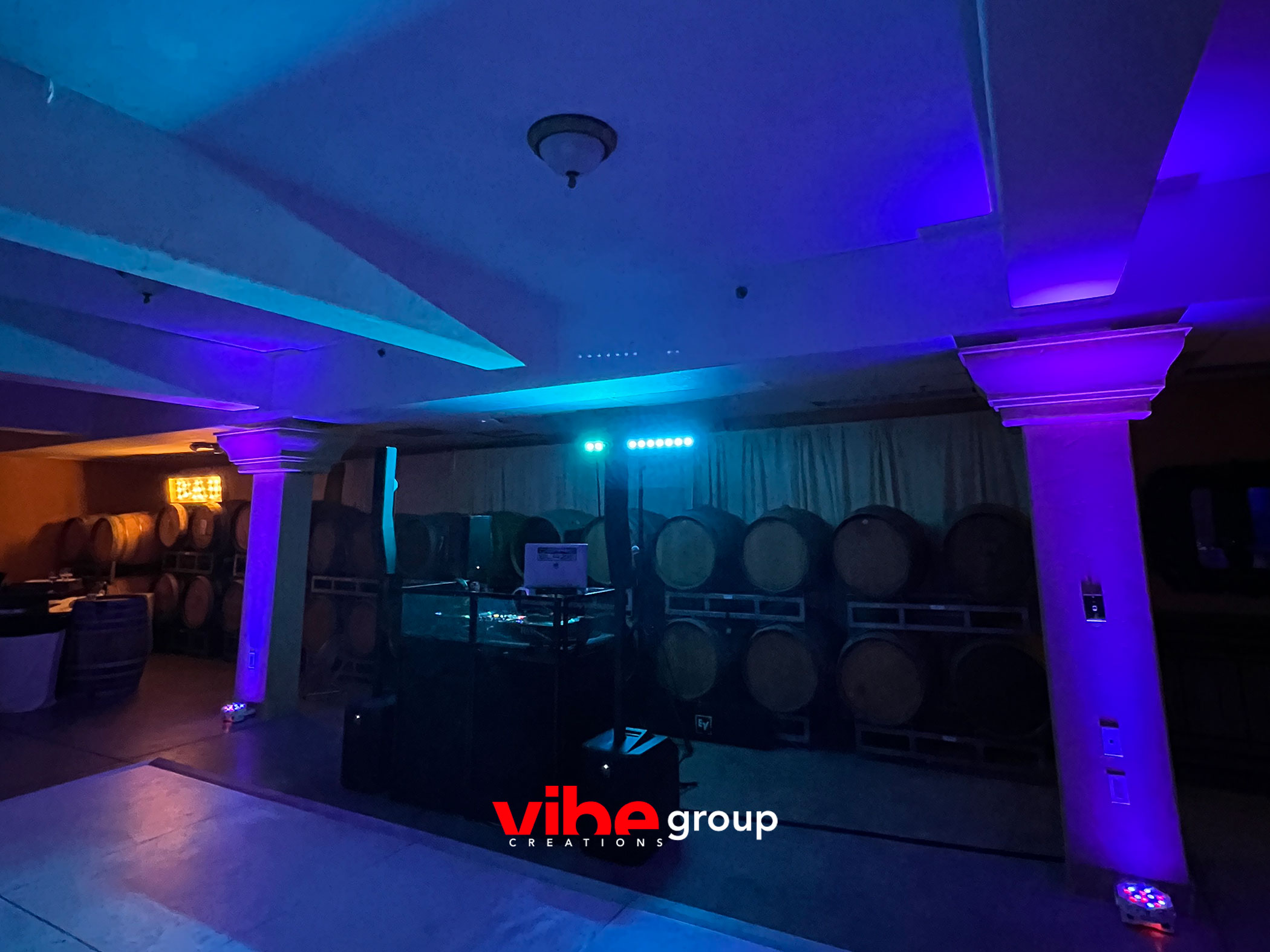| 12 Uplighting ($400) programmable to any color to illuminate and highlight the venue's perimeters. | |||